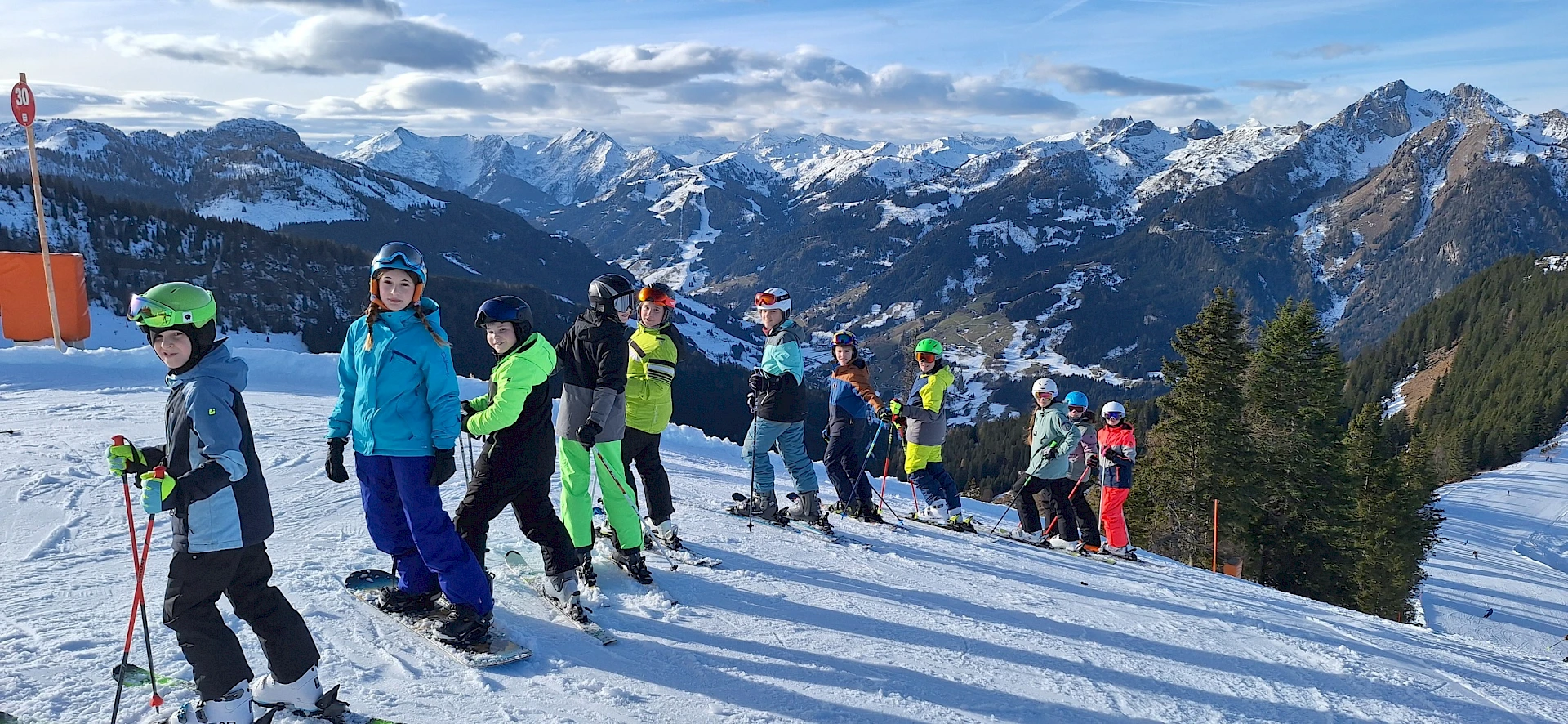 22.12.2025Kurz vor Weihnachten verbrachten die 2. und 3. Klassen der Mittelschule eine abwechslungsreiche Wintersportwoche in Wagrain. Bei strahlendem Wetter und hervorragenden Pistenbedingungen konnten die Schüler*innen viele Stunden auf Skiern genießen und ihre Fähigkeiten weiter verbessern.